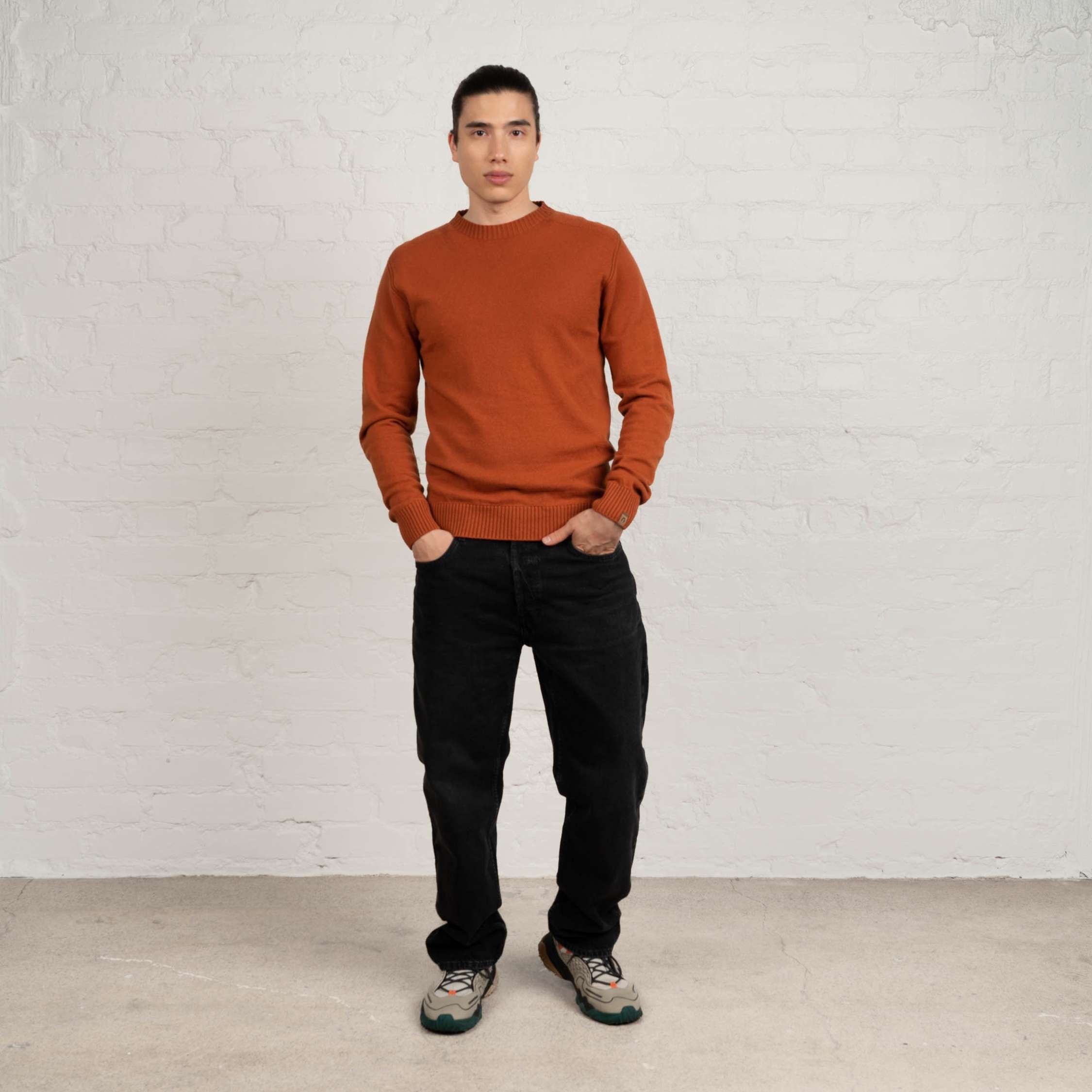 Halla miesten merinoneulepusero - poltettu oranssiHalla miesten merinoneulepusero - poltettu oranssi
