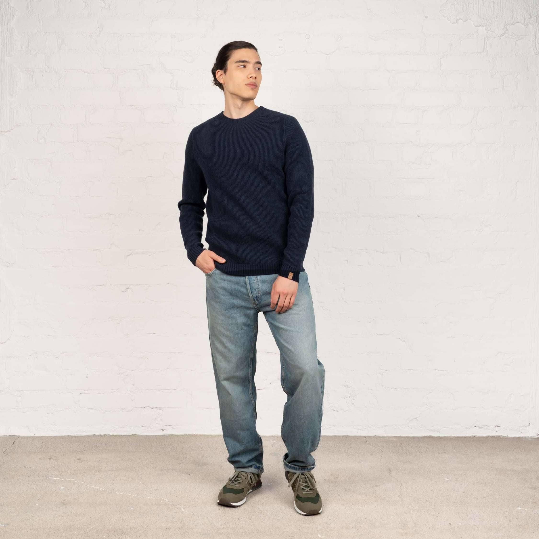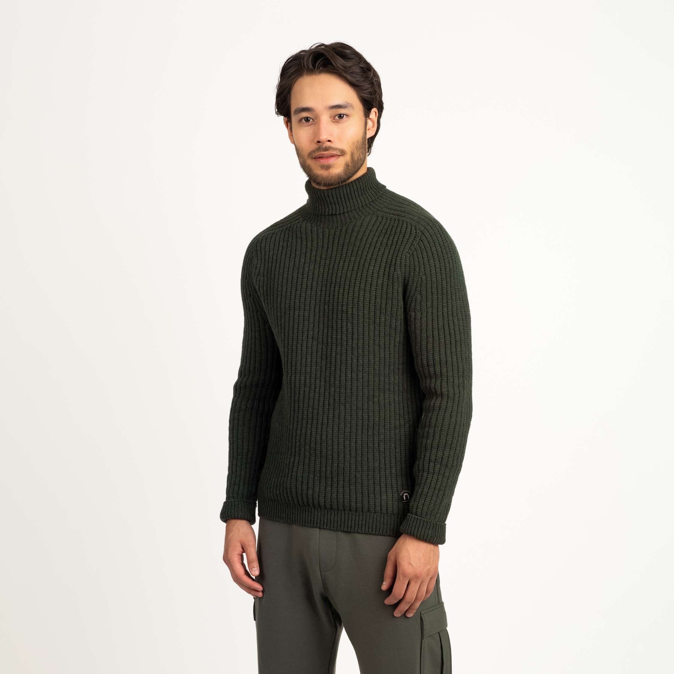Kuru miesten merinoneulepusero - kivenruskea