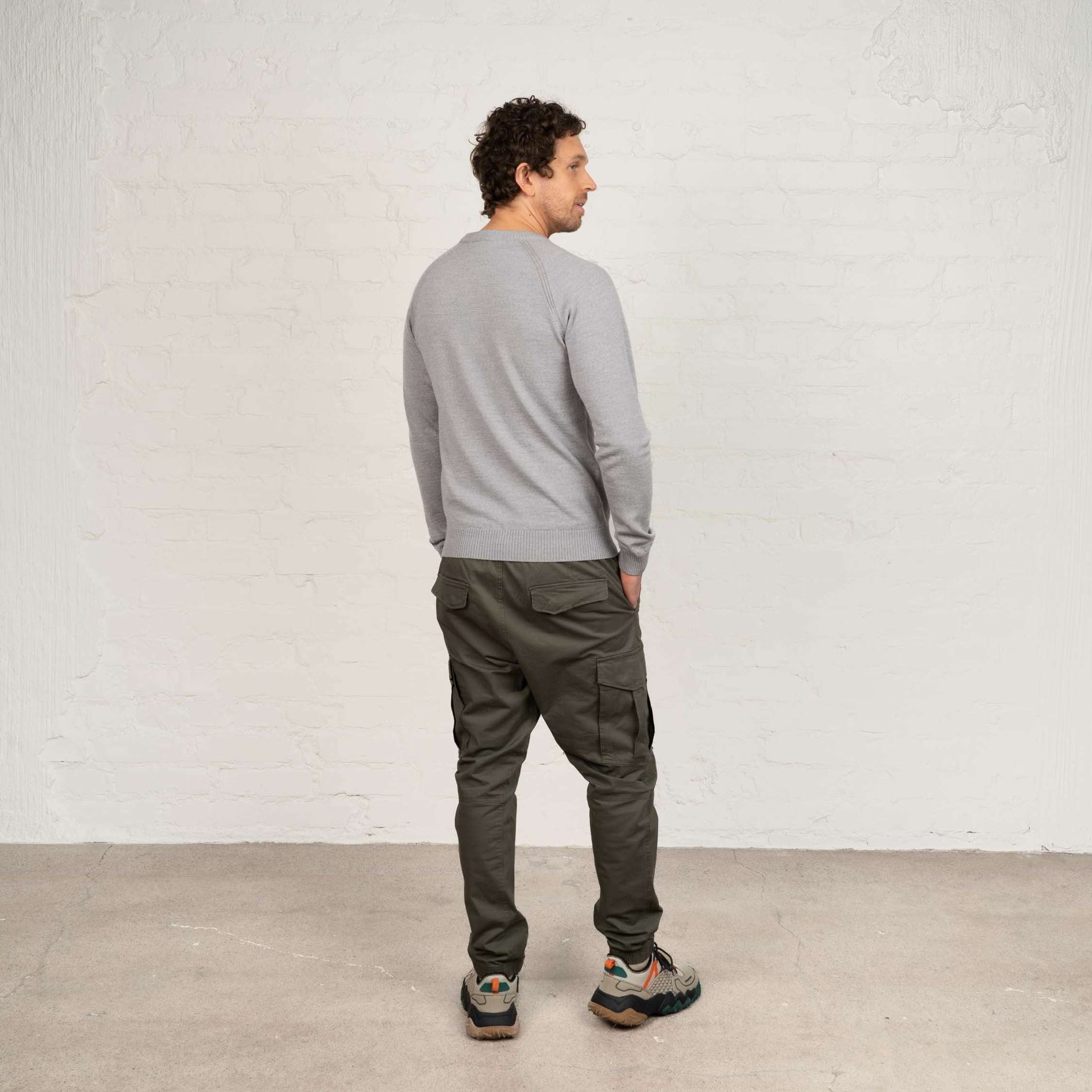 Hohka miesten merinoneulepusero - vaaleanharmaa