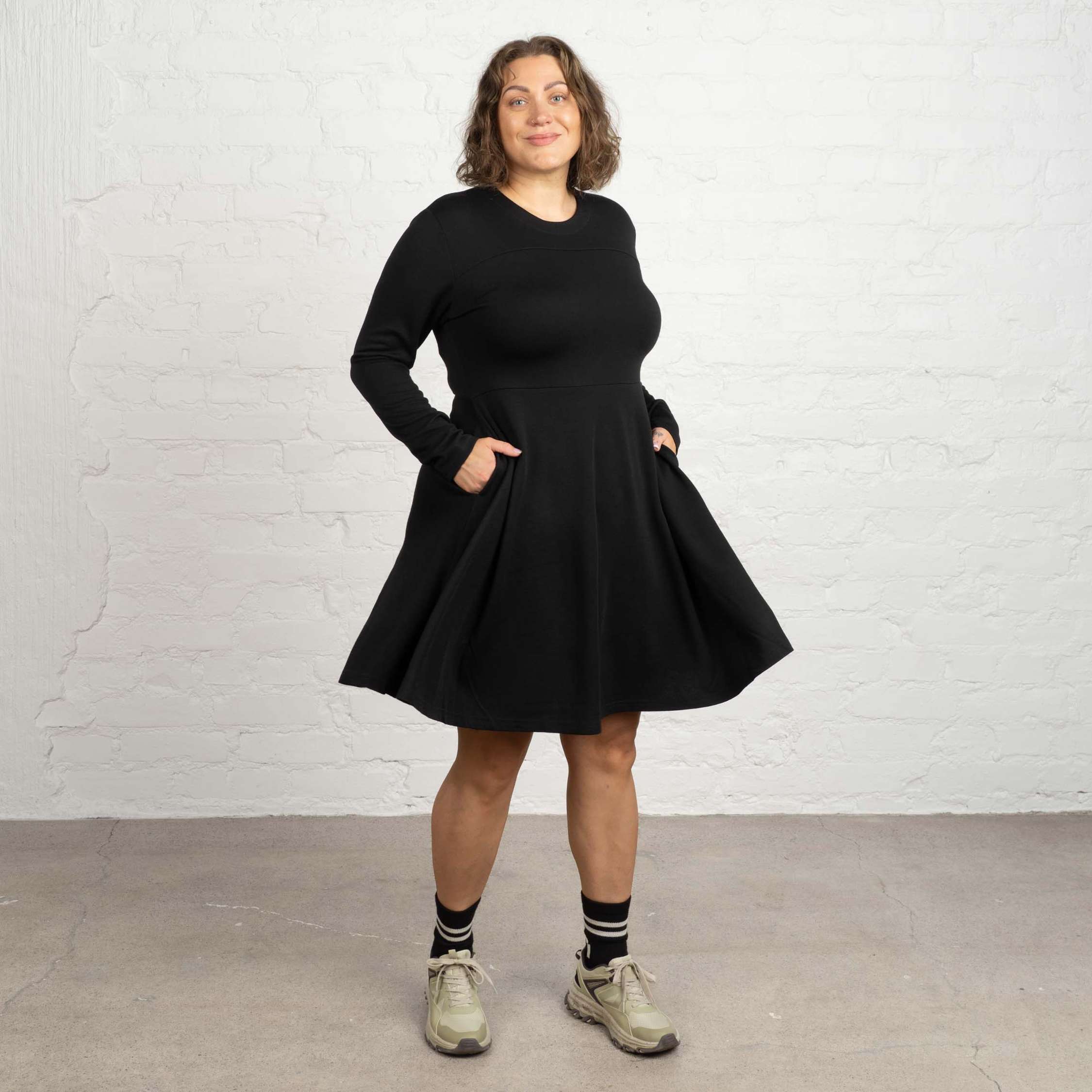Monikäyttöinen Raven-merinomekko on valmistettu hengittävästä merino-bambuneuloksesta, joka säätelee lämpötilaa ja tuntuu miellyttävältä ympäri vuoden.