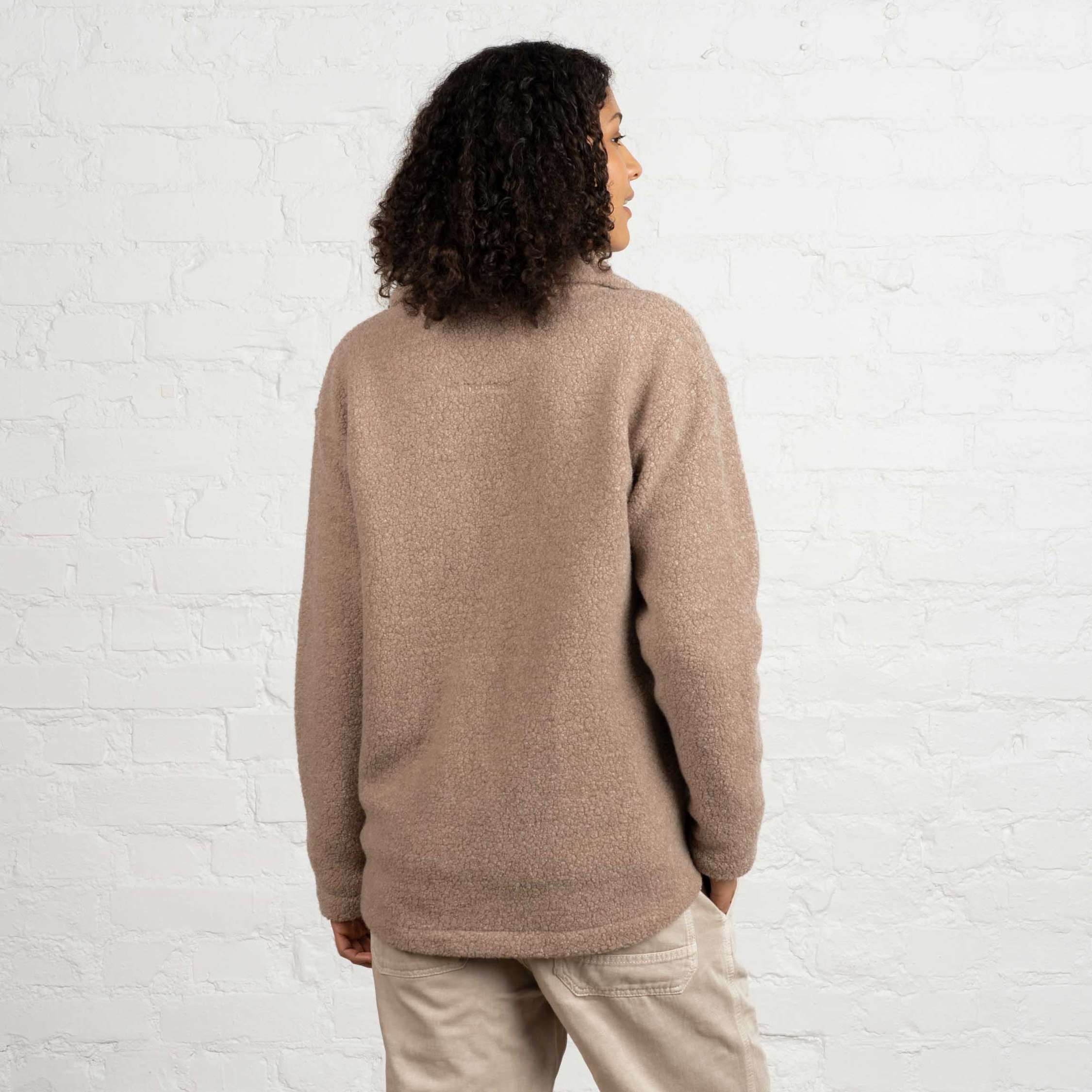 Lämmin ja hengittävä fleecetakki, joka on valmistettu kevyestä, kierrätetystä italialaisesta villasekoitteesta.