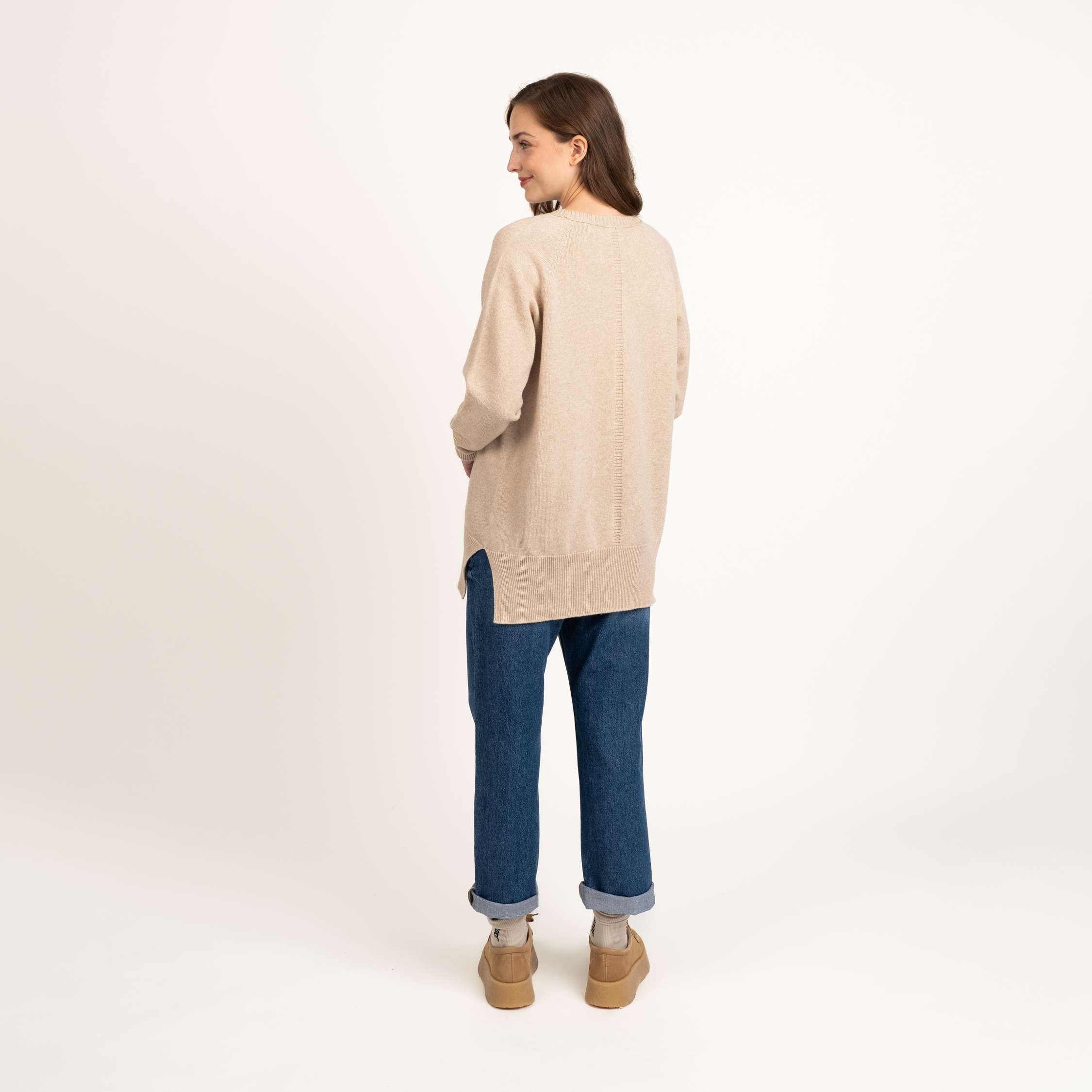 Flake är en vacker oversize tröja tillverkad i North Outdoors egen stickfabrik i Uleåborg av mycket högkvalitativ, mulesingfri 100 % merinoull.